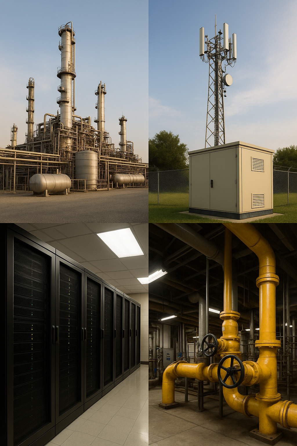 - Critical Infrastructure – Utilities, energy facilities, telecom towers, and transport networks.